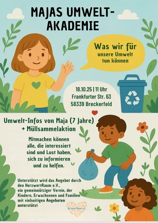 Die 7-jährige Maja lädt alle Interessierten herzlich zu ihrer „Umwelt-Akademie“ ein, um gemeinsam zu lernen, was wir für unsere Umwelt tun können.
