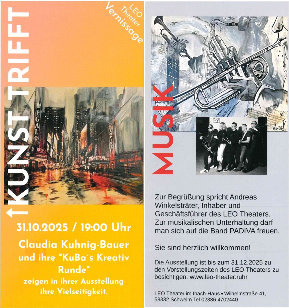 Kunst trifft Musik Die Breckerfelderin Claudia Kuhnig-Bauer und ihre „Kreativ Runde“ präsentiere ihre Ausstellung im Leo Theater Veröffentlicht in Allgemein durch Tim Buck
