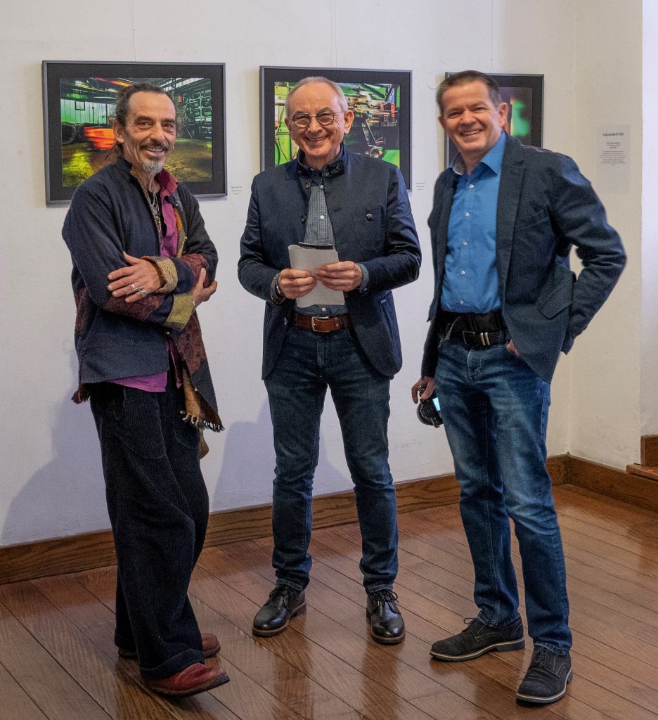„Industriekunst im Ruhrgebiet und damit auch im Ennepe-Ruhr-Kreis ist für viele eine Kunstausprägung, die stillgelegte Anlagen einer vergangenen Epoche in den Fokus nimmt. In Fotografien, gemalten Bildern, Skulpturen oder Installationen finden sich stolze Relikte der Industrialisierung wieder“, so Landrat Jan-Christoph Schaberick in seiner Rolle als Schirmherr der Ausstellung. Philip Ian Pearce, Vasilij Plotnikov und Achim Brodde hätten diesen Ansatz aktualisiert, hinter die Tore von aktiven Unternehmen in Breckerfeld, Hattingen, Schwelm und Witten geschaut und interpretierten damit Industrie, Tradition, Innovation und Handwerkskunst auf eine ganz neue Weise.